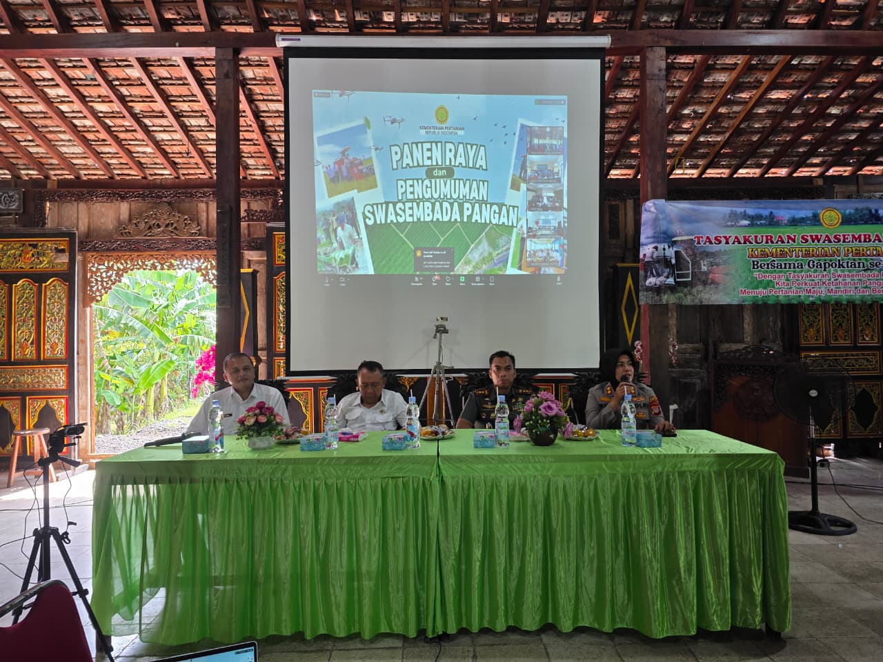 Bapak Panewu Jetis Anwar Nur Fahrudin S.STP., M.Eng mengikuti kegiatan Panen Raya serta pengumuman Swasembada Pangan oleh Bapak Presiden Prabowo Subianto bersama Menteri Pertanian Bapak Amran Sulaiman yang disampaikan secara daring melalui Zoom, bertempat di Joglo Kalingga, Kalurahan Sumberagung.